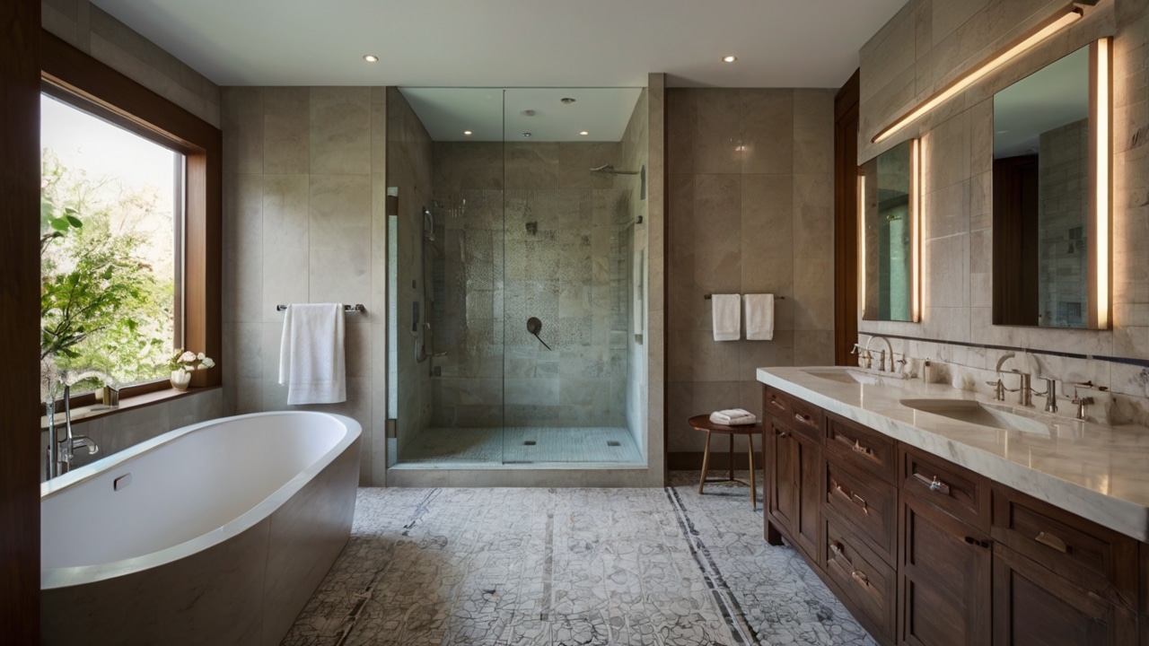 Stone and porcelain tiles: Marble, limestone, or large-format porcelain tiles provide elegance and resilience.